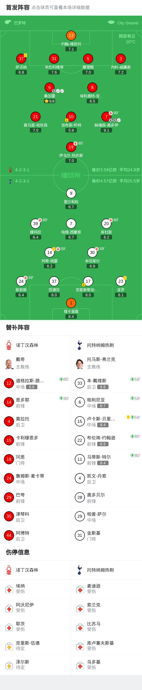 剑南春丨热刺客场0-3诺丁汉森林,奥多伊2射1传,桑加雷2传1射
