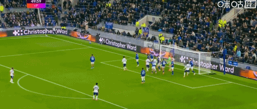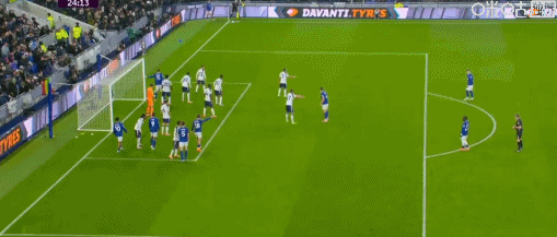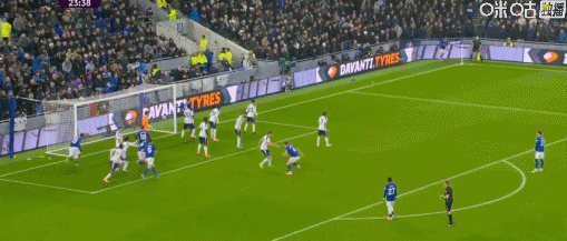 第45+6分钟,波罗开出角球,范德芬头球双响,热刺2-0埃弗顿
